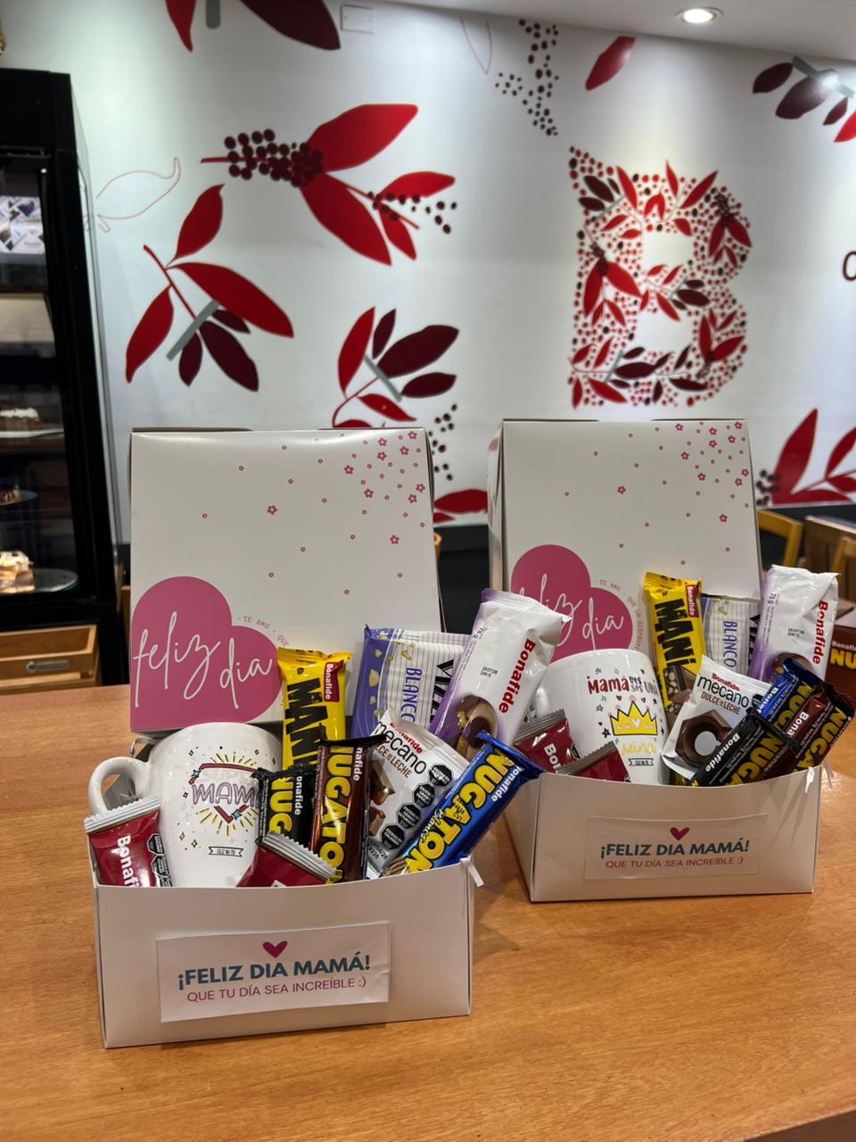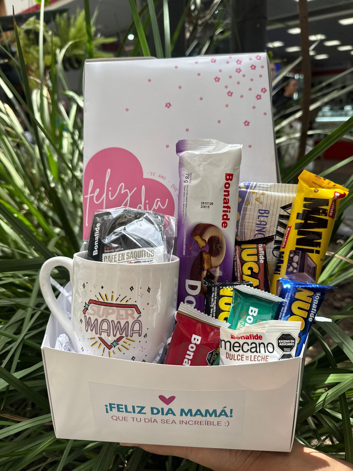 💝 El desayuno más dulce para mamá.Incluye taza temática, chocolates Bonafide y productos para acompañar el café.Presentación en caja blanca con diseño “Feliz Día Mamá” 🎀